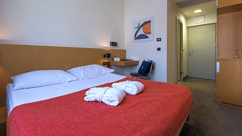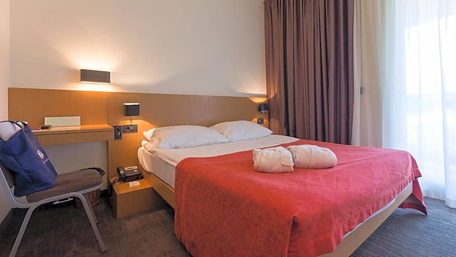This special offer includes: - Accommodations in a Premium Double Room - Free accomodation for 1 child up to 12 years of age (along 2 adults) - Full board including: a) diverse buffet breakfast b) lunch buffet with vital dishes c) domestic dinner with a selection of local and national specialties with a cooking show - Unlimited drinks for lunch and dinner - Free entry to swimming pools at the Water Planet - Late night swimming at the Water Planet on Saturdays until 2:00 AM - 1x free entry for swimming pools in the Wellness Center Termalija located in Terme Olimia, Slovenia - 1x free entry to the Sauna World during the stay for adults only - Bathrobe and towel for pool or sauna in the room - Daily entertainment program - Children's workshops with the mascot Tuhi - Kids fun and entertainment in the playroom: Tuhi aqua fun at pools. - Unlimited use of fitness facilities - Free WI-FI Access Please note that only 1 extra bed is available in this room type.